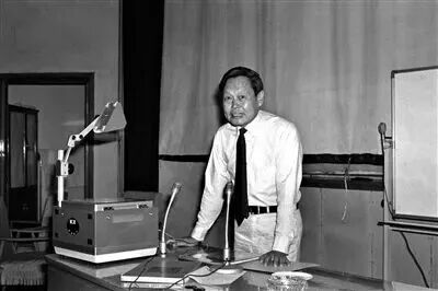 1986年5月26日,杨振宁在北京向来自全国各地的物理研究生和科研人员作报告。新华社发