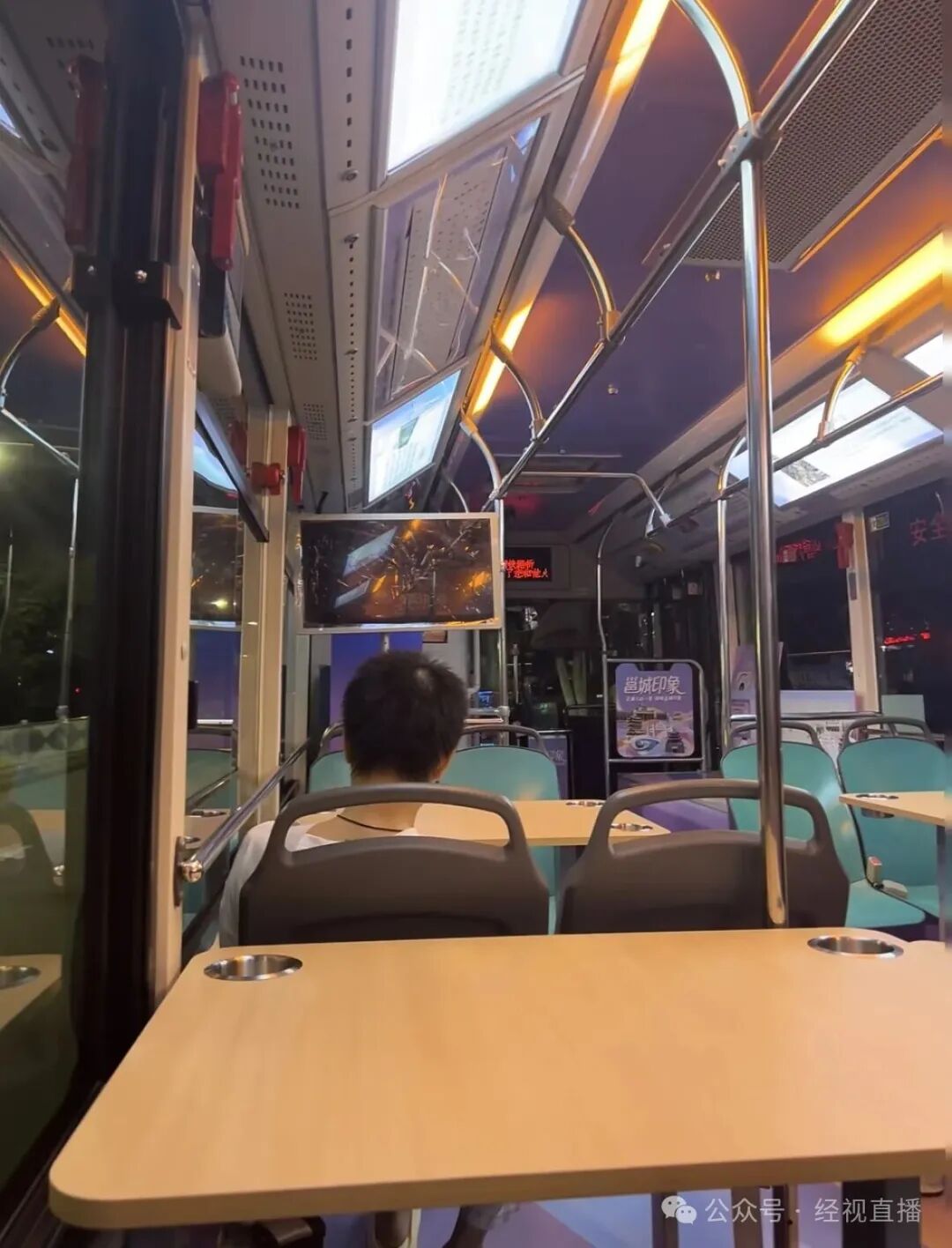 工作人员介绍,此类带桌板的公交车主要为提升游客体验而设计。车内座椅围绕桌板面对面布置,便于游客聊天,桌上可放置瓶装水等小件物品。工作人员也提醒,不建议在车上进食,尤其应避免热汤面、粉类等气味较重或易洒的食品,以防急刹车时发生危险或影响其他乘客。