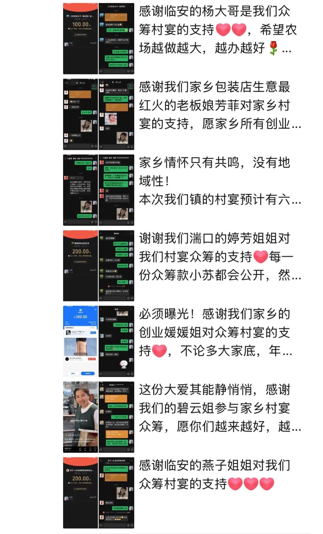 300元,来自村里返乡创业青年;288元,是买过农产品的老客户转来的;2000元,来自反哺家乡的坚果“创一代”;还有人转账1000元,没有留下姓名;有老人一定要支持500元,小苏不肯收,老人说那就当是我家孩子支持的……