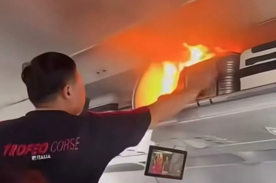 网上流传的视频显示,该航班内锂电池自燃时,有明火出现,舱内有黑色烟雾,有人喊到“关掉,关掉”。据机上乘客介绍,该航班客舱基本满员,除了韩国人外,大部分是前去看演唱会的年轻人,“着火是一位韩国乘客携带的锂电池”。