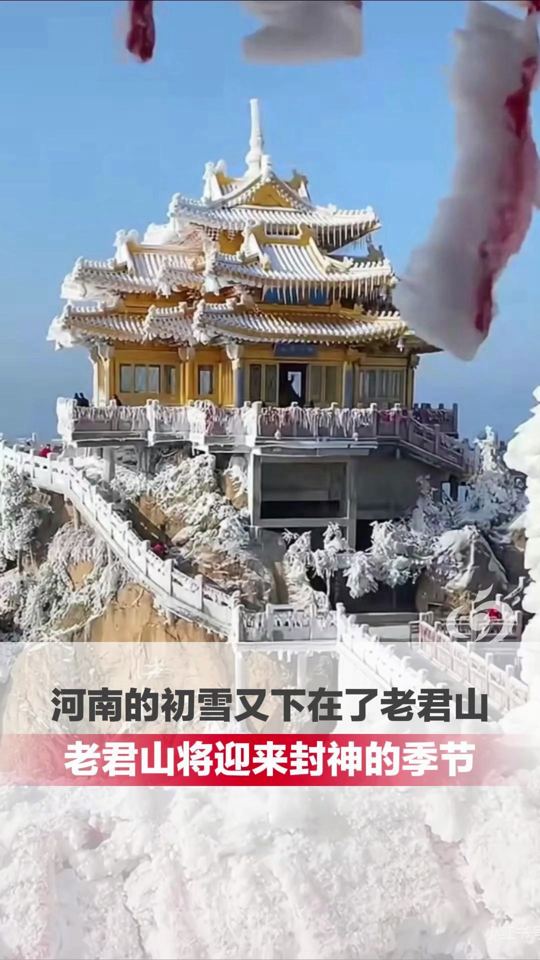 10月20日,河南今秋的第一场雪,落在了洛阳老君山。绿叶尚未褪尽,白雪已然加身。