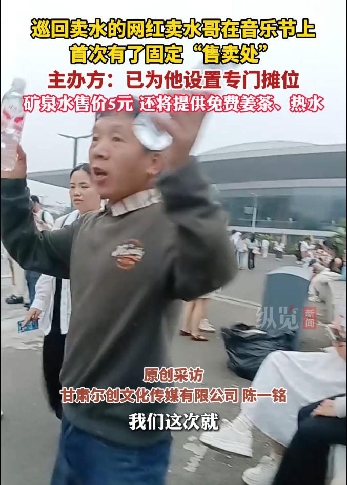 网红卖水哥长期在全国各大演唱会和音乐节现场销售矿泉水,曾因周杰伦济南演唱会提前十几个小时进入会场蹲点走红。随着卖水哥在互联网的知名度提升,近期有多家音乐节官方允许其进入会场卖水。(见习记者王怡文 记者卢伟丽)