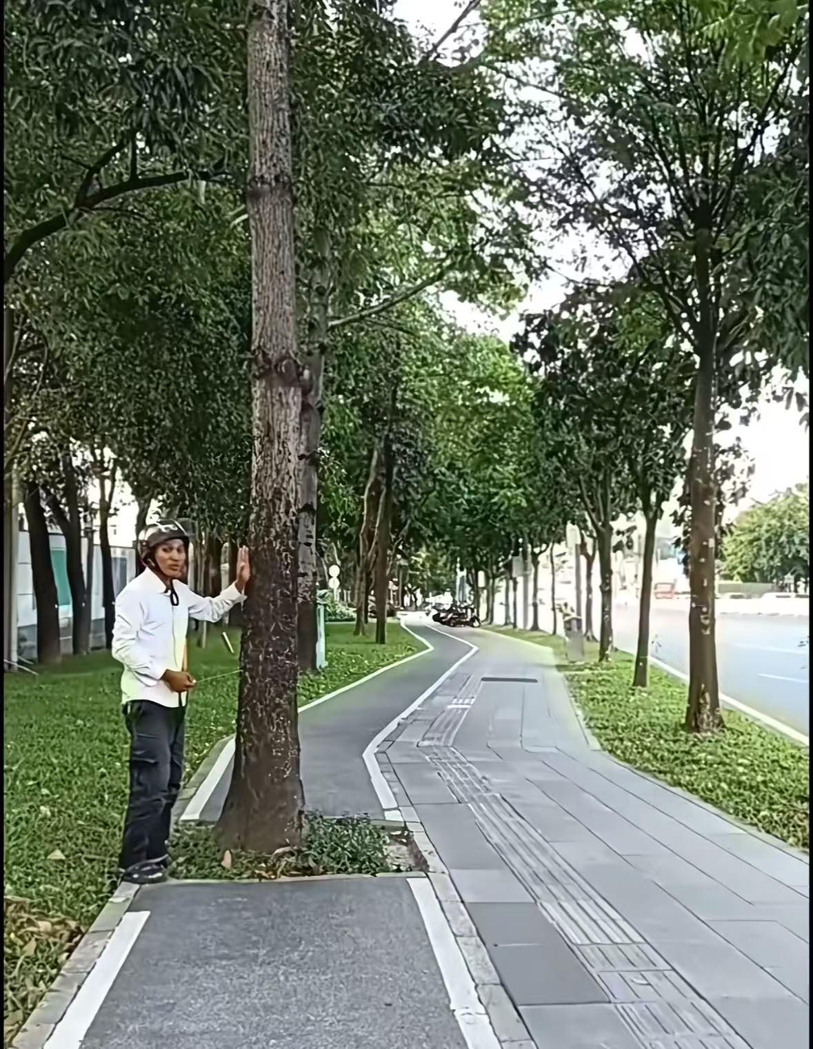 比如他曾反映一条道路上有井盖裂开严重。后续他发现有些井盖被换了,但有一处只是被围了起来。“我们来看看为啥他这个井盖还没换呢。因为这旁边有棵树,这里有个树根,如果他直接换一块新的上来,这边右边这个角就会高出来很多。这边是公园,跑步的人比较多。高出来太多的话,会把人给绊倒。所以师傅们今天没换,肯定是回去协商怎样换这个井盖。”