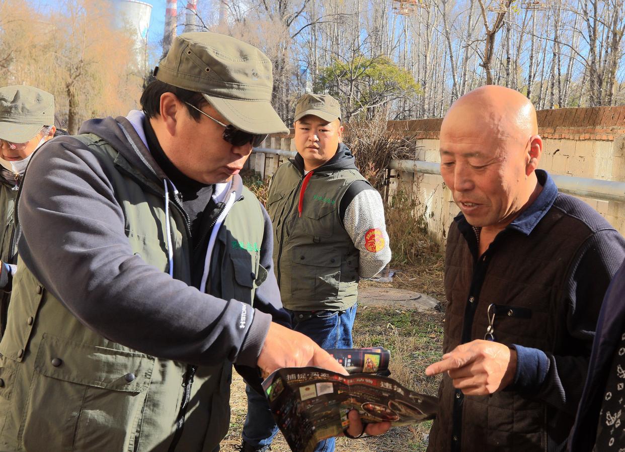 哈尔滨野保志愿者团队志愿者在进行护鸟宣传(2020年10月25日摄)。新华社发(张树摄)