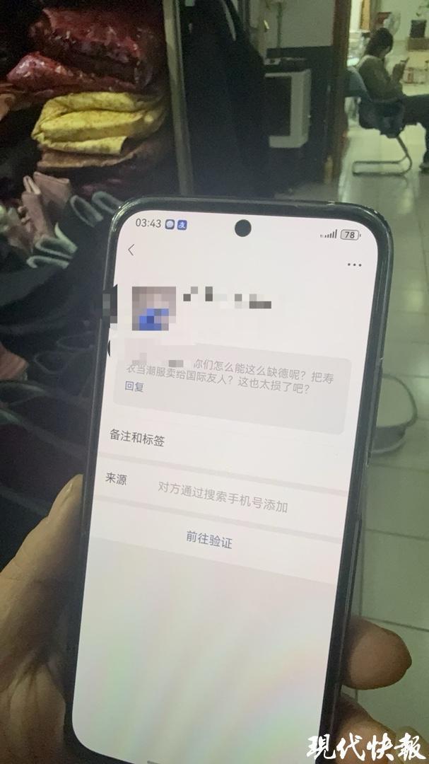耿女士告诉现代快报记者,当时有路人拍视频发在了社交平台,后来视频在网上火了起来。随后,事情的发展让耿女士也很无奈。网友拍摄的视频中,暴露了她的店名和联系方式,导致她的手机都快被打爆。耿女士一个上午接到了300多个电话,有一些人还要求加她的微信,然后就是各种辱骂、指责,说她把死人用品卖给外国人“缺德”。