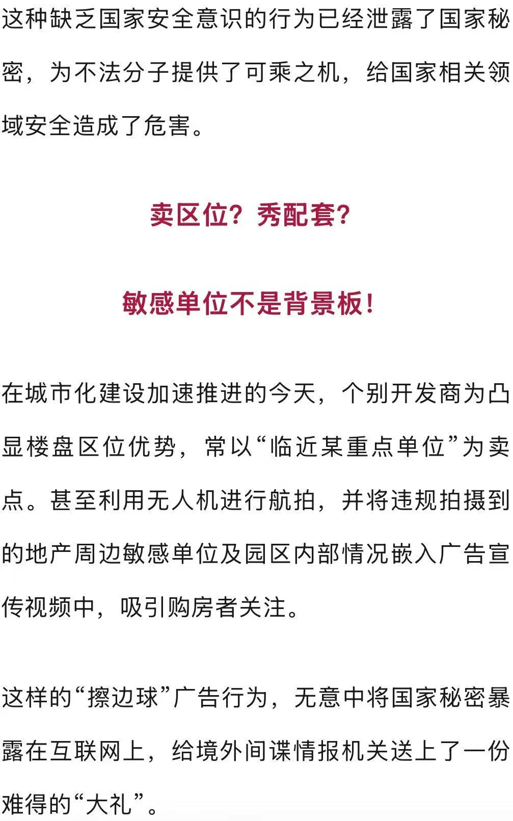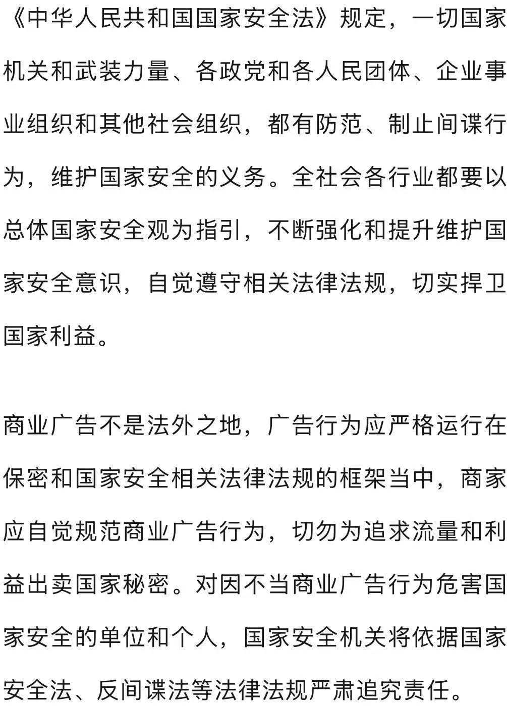 近期,国家安全机关发现并查处多起违规商业广告行为,个别商家涉嫌在广告宣传中发布敏感单位涉密信息,给国家安全造成潜在危害。