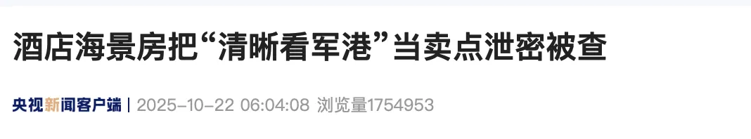 “一线海景房”本是高端酒店的卖点,但个别商家却把“能清晰看到军港”当作噱头进行宣传。