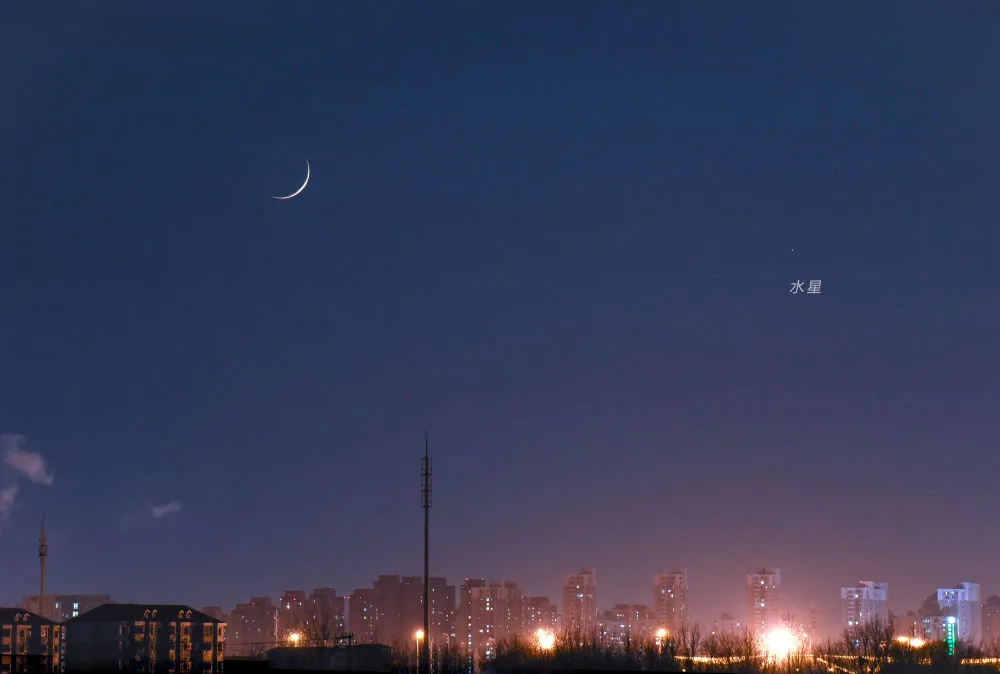 “如果天气足够晴好,感兴趣且喜欢挑战的朋友不妨寻一地势平坦、视野开阔无遮挡的地方,试着找一找这幕‘双星拱月’。由于三者的地平高度非常低,且几乎跟太阳前后脚落入地平线以下,可观测时间短、受阳光影响大,因此必须借助双筒望远镜等设备才有可能观测到。但如果观测成功,将是一件很有成就感的事情。”修立鹏说。