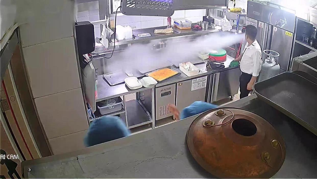 △涉事气瓶泄漏时的厨房监控画面。图源:国务院安委会办公室