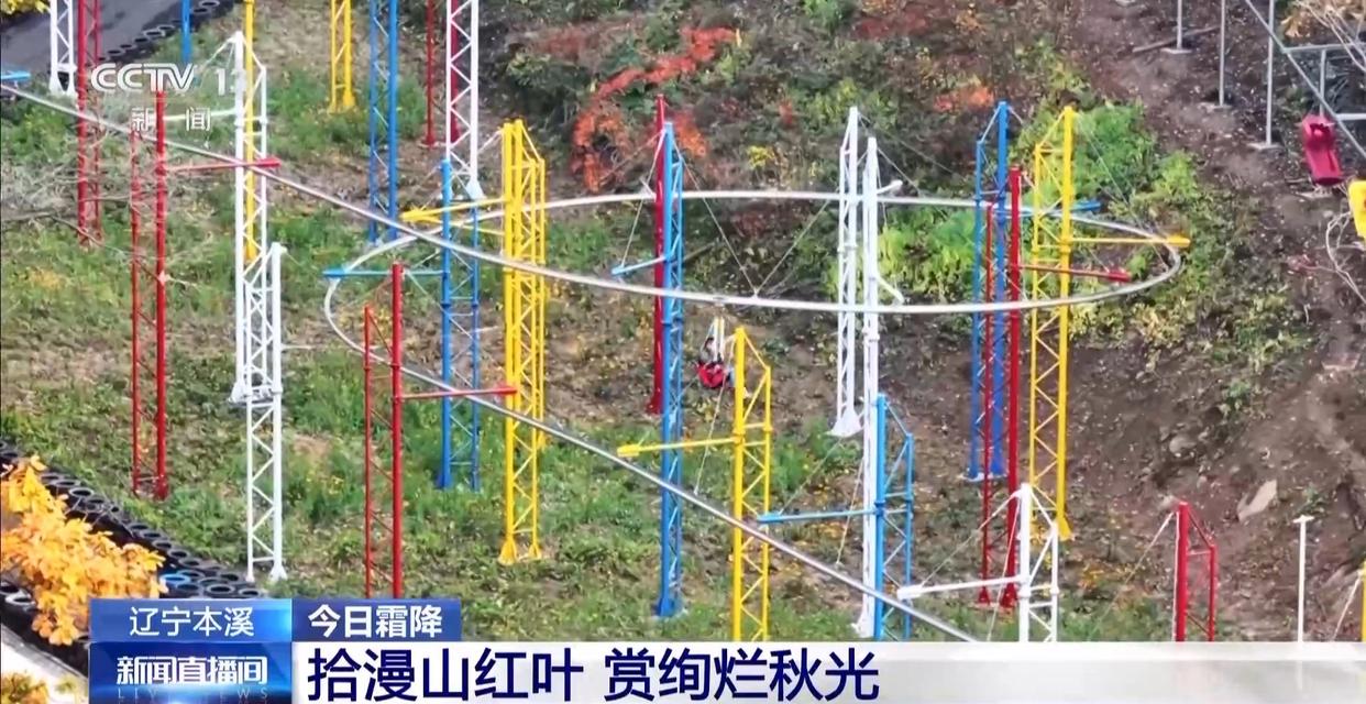 总台记者 胡翔:在辽宁本溪的大冰沟国家森林公园,温度已经下降到10℃左右,目前,整个景区的枫叶基本达到了最佳的观赏期。两侧山上不同颜色的枫叶层层叠叠,组成了一幅绝美的深秋风景。