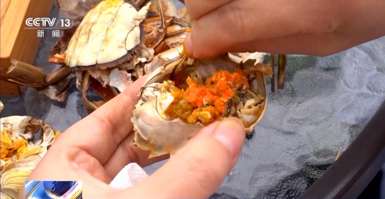 游客 陈燕萍:没想到在兴化垛田能一边看菊花,一边吃蟹。既饱了眼福,又饱了口福,把霜降的仪式感全拉满了。