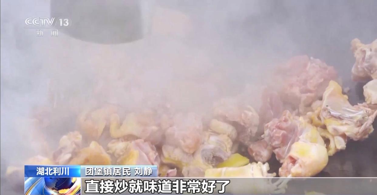 团堡镇居民 刘静:像一般的鸡都要焯水了再来炒和炖,但是我们利川的跑山鸡,本身肉质非常紧实,鸡味非常浓郁,不用焯水直接炒味道就非常好。