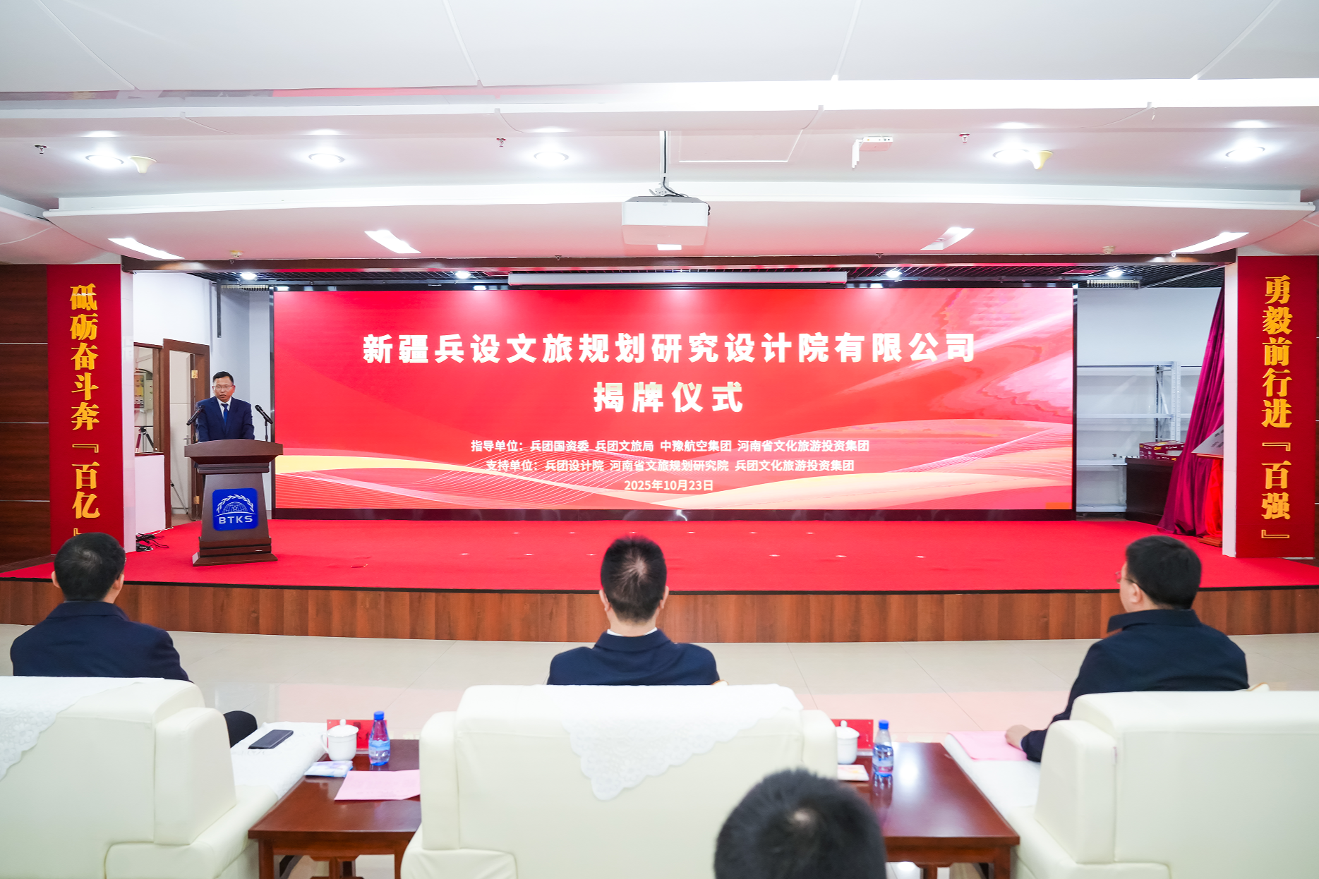 10月23日上午,新疆兵设文旅规划研究设计院有限公司(以下简称“兵设文旅规划院”)揭牌仪式在乌鲁木齐市光明大厦多功能厅举行。兵团国资委党委委员、副主任永伟,兵团文旅局党组成员、副局长逯禾红,兵团设计院及在乌分院负责人,河南合作方,兵团文旅投等相关单位代表参加揭牌仪式。
