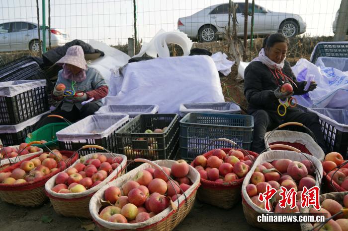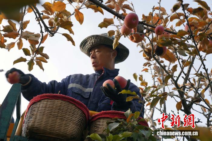 10月23日,丰收的果园里,民众正在采摘苹果。图/CNSphoto任海霞摄