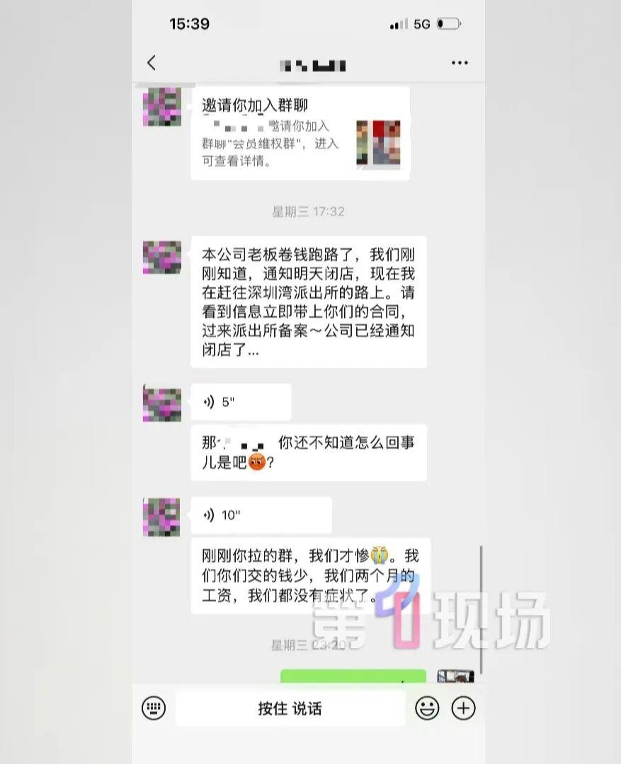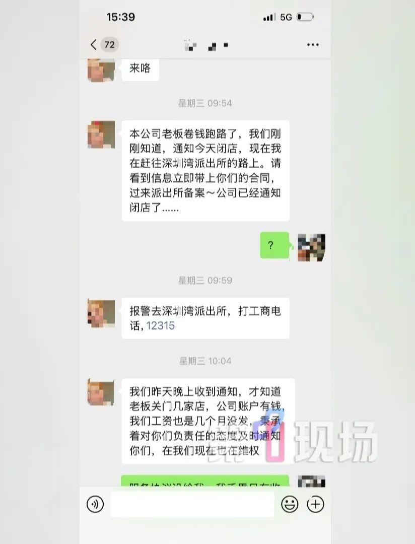 但是10月21日,有两名“爱在芳华”的员工,先后发微信告诉唐先生,现在门店闭店了,老板联系不上,员工工资也没发,让他也一起去报警。