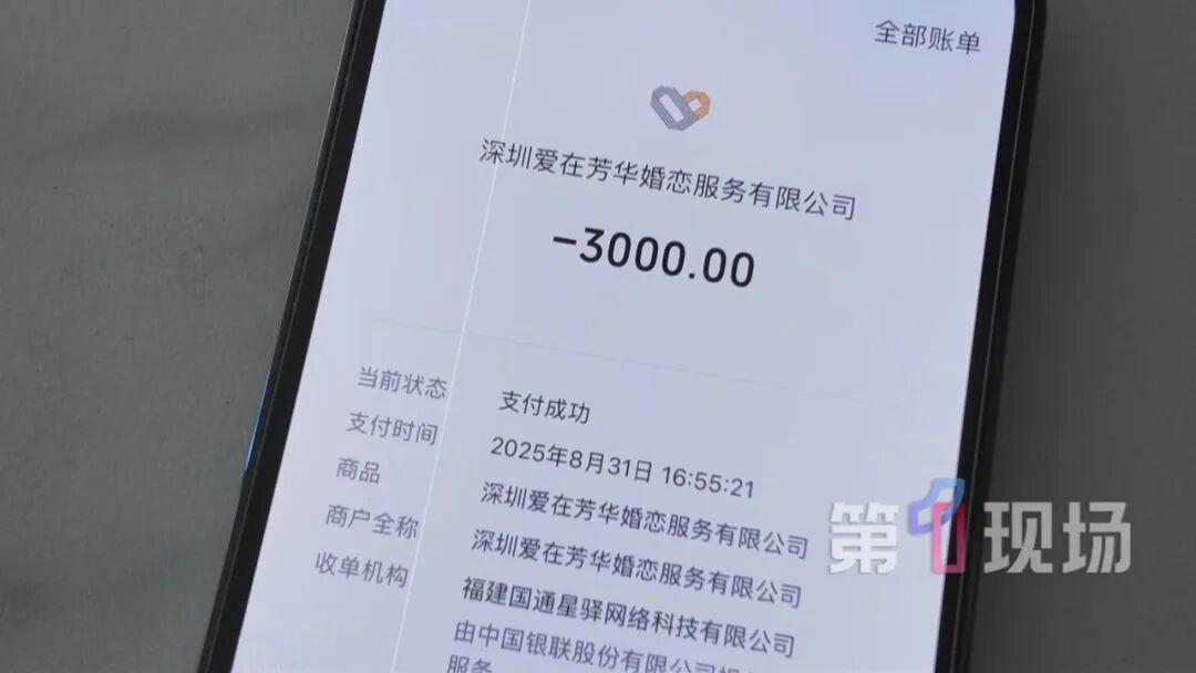 唐先生今年28岁,单身状态。今年8月底,有婚恋公司的人联系他,说可以介绍线下优质女孩给他,并表示,所有会员无论男女,都需付费入会。于是他交了3000元入会,收款方是,深圳爱在芳华婚恋服务有限公司。