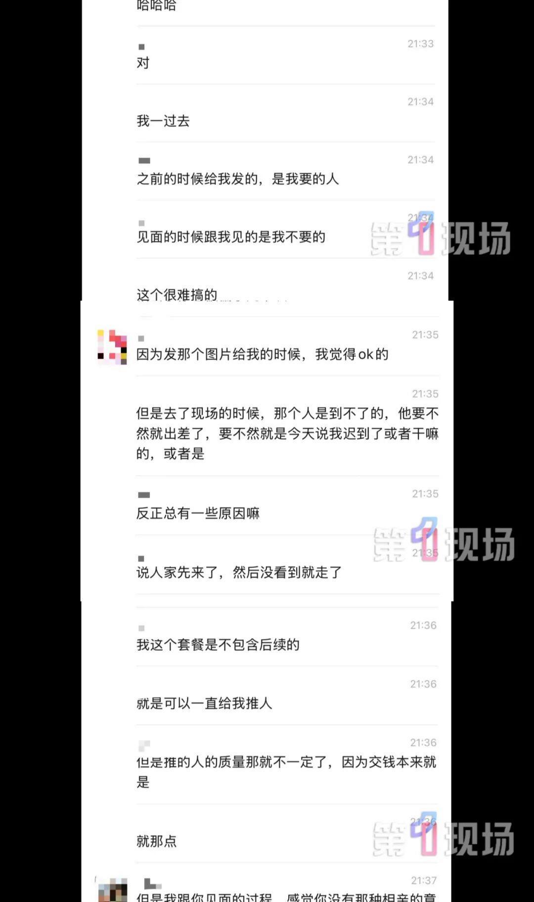 唐先生跟记者表示:“她的资料卡上写的是人事岗位的工作,但是我跟她聊到这方面话题,她一点都不懂。她的态度也不是相亲的态度,对我个人信息一点都没有想了解,对我本人也不感兴趣。所以我怀疑这个女孩子是公司请来的的演员或者婚托。通过微信聊天,我也跟她印证了,她承认是公司安排过来当托的。”