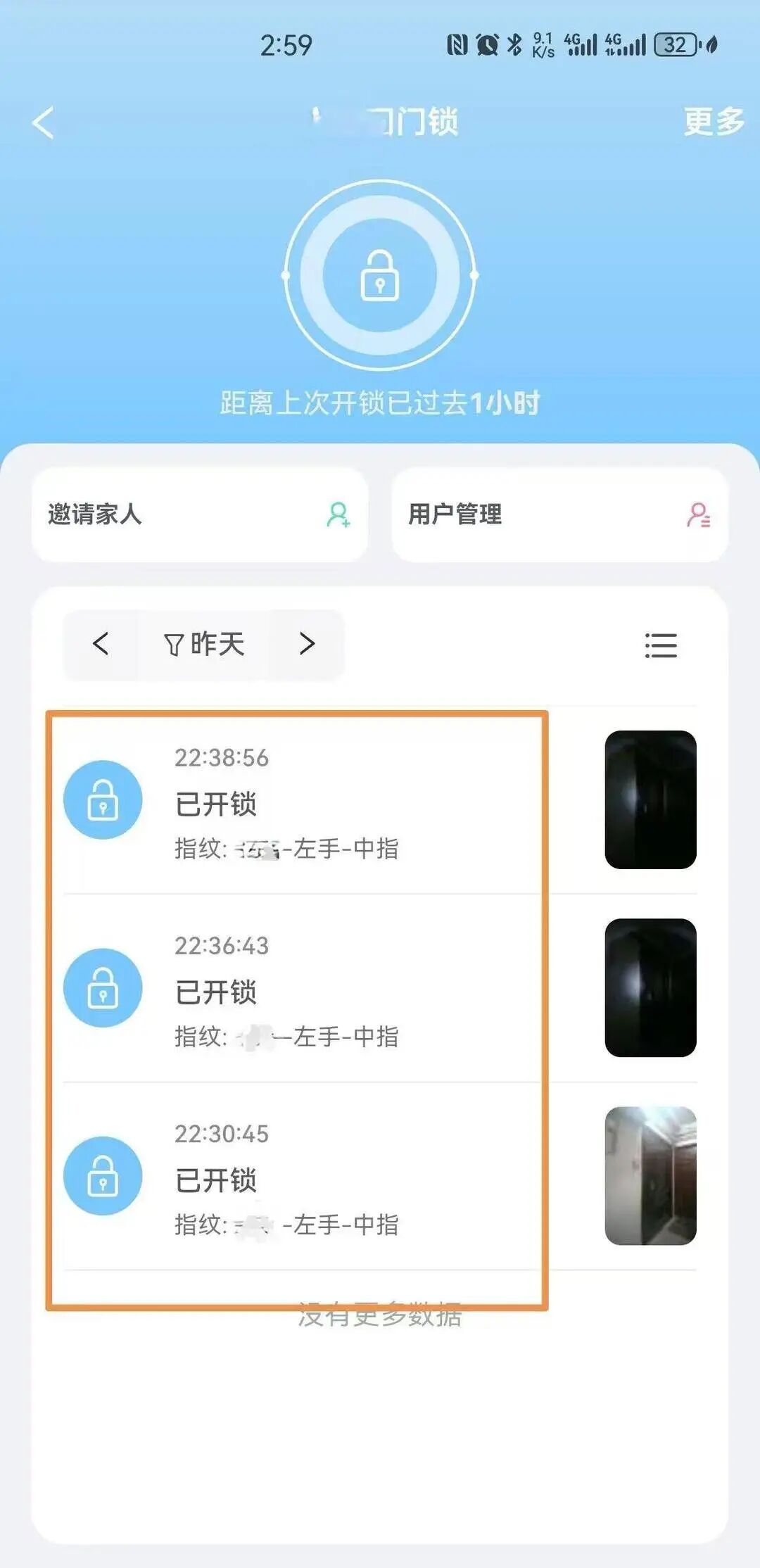 智能门锁开锁记录
