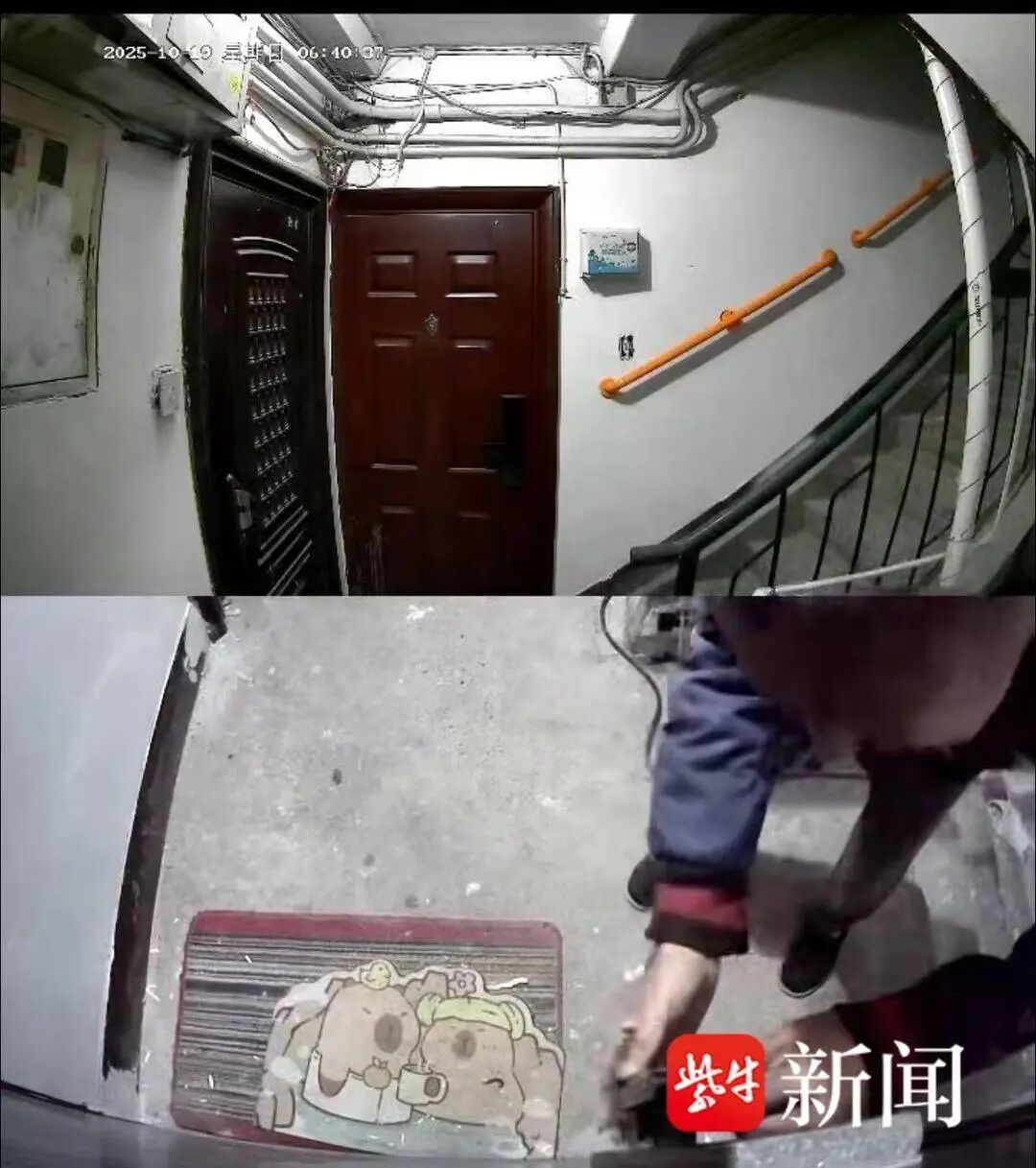 林女士告诉记者,事情发生在10月19日,当时家里没人,翻看手机提示栏夹杂一条门铃语音呼叫提示,结果查看视频监控时,发现有一名陌生男子在家门前眼神涣散还拍打着门。