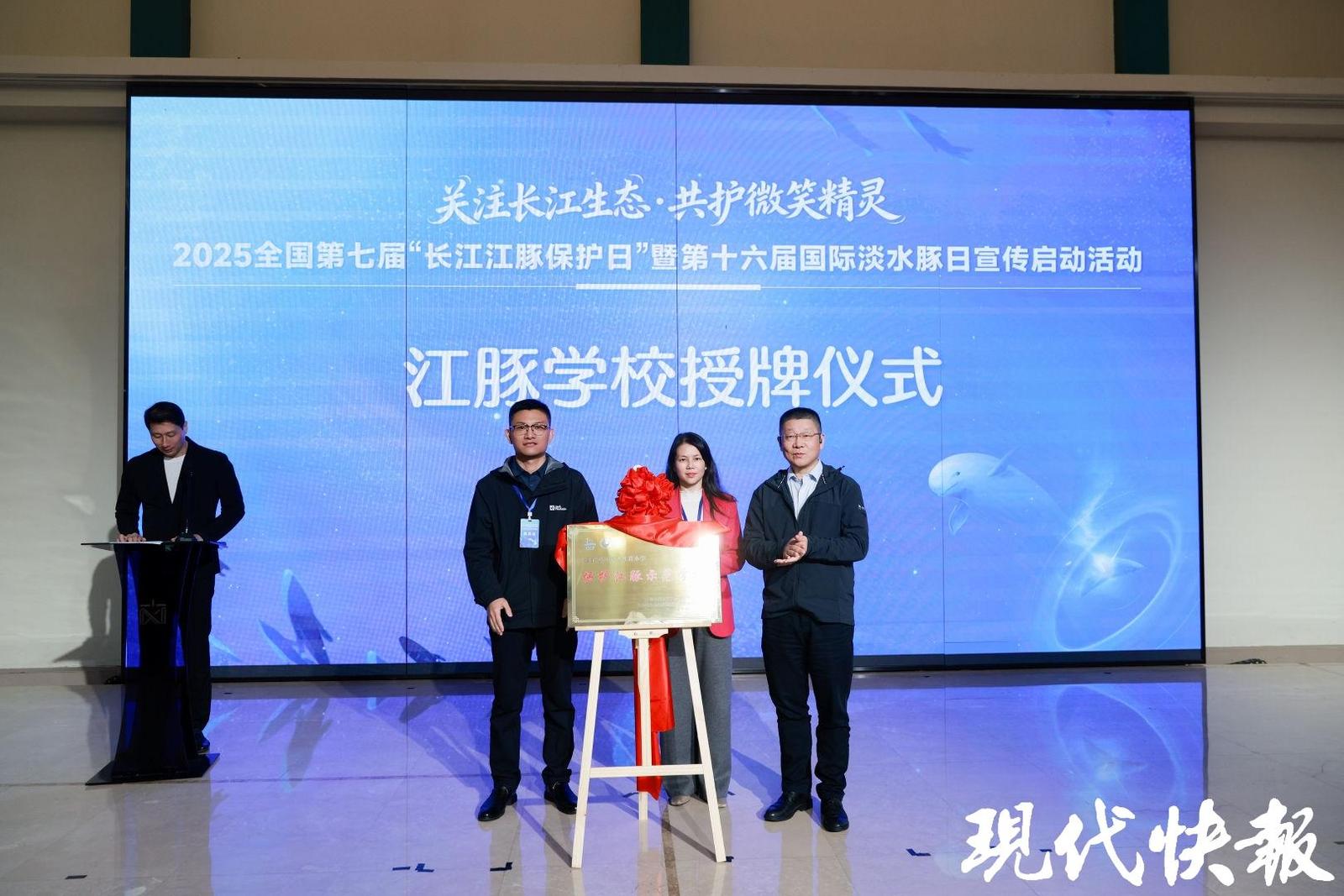 此外,活动现场还同步开展多项配套举措:发布全国首个江豚保护工作人员及志愿者保险产品;镇江首个江豚示范学校正式揭牌;湖北、湖南、江西、安徽、江苏等五省志愿者代表接过首支全国水生野生动物保护志愿队队旗。同期举办的国际淡水豚保护与社区发展研讨会、长江江豚保护最新科研进展发布、首届国际淡水豚与鲸豚保护影像展等活动,也从多维度推动江豚保护宣传,助力营造“全民关注、全民参与”的生态保护氛围。