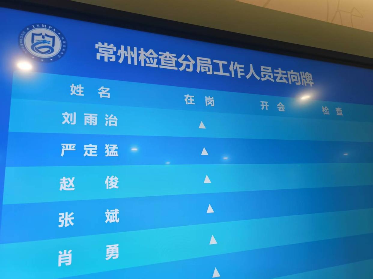 常州药监局工作人员去向牌形同虚设?(记者 刘强摄)