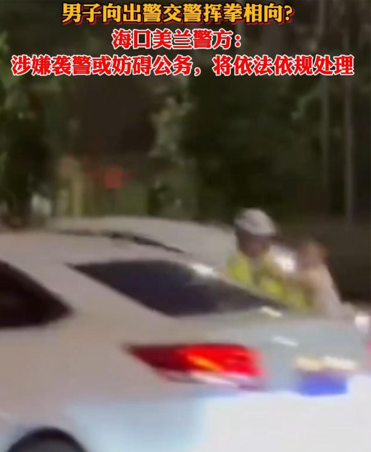 10月25日,海南网友反映,疑因两车发生交通事故,交警现场处理时被一名男子挥拳相向。