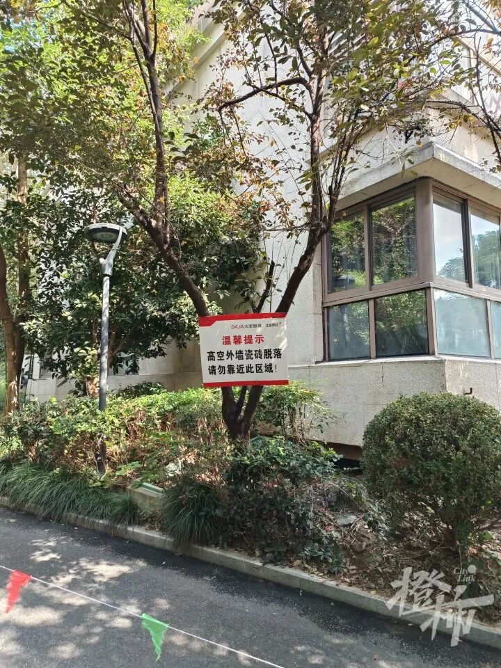 物业邓经理说,物业发现小区外立面存在脱落风险,对重点部位进行了挂牌提示,并采用了圈围警示隔离。小区安全管理由物业负责,但解决问题的出资与维修又不归物业管,一旦出事物业经理是第一责任人,现在外立面脱落的情况让他很着急,很心慌。
