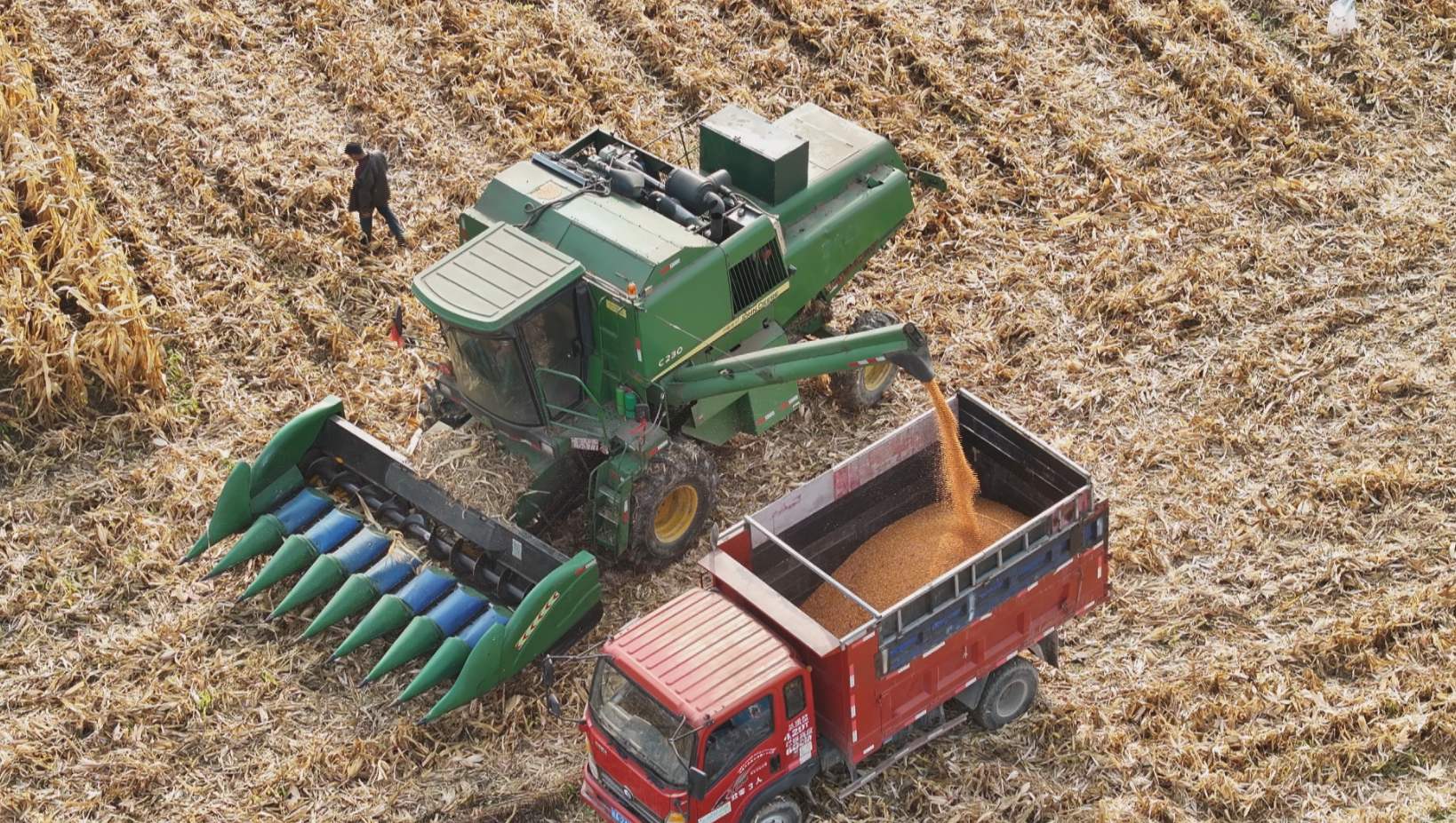 机械化收割让种植户秋收效率实现了质的飞跃。按照传统人工收割模式,100亩玉米至少需要10天,如今依靠收割机,仅用一天就完成了全部收割任务。收割后的玉米被立即运往烘干厂,经烘干处理后将快速进入市场销售。“收割、烘干、销售”的无缝衔接,既减少晾晒损耗,又能让种植户快速变现。