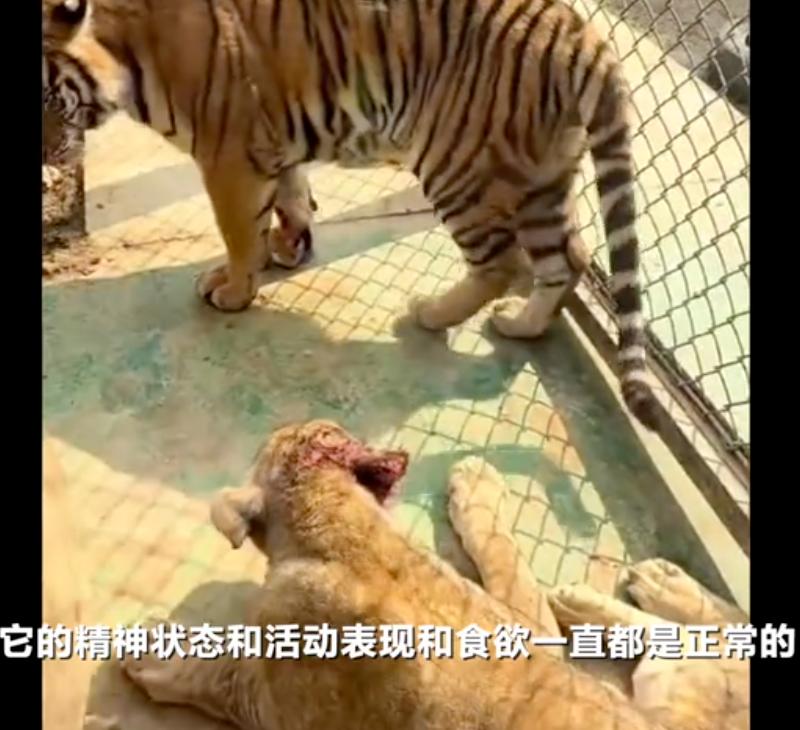 10月28日,记者从皖南野生动物园处获悉系非洲狮和东北虎玩闹,狮子耳部受伤,伤口已结痂。上述工作人员称,视频中的非洲狮和东北虎均在2024年出生,目前已分开展出。
