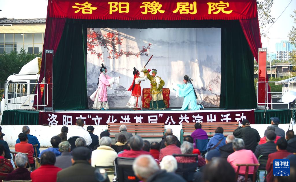 10月26日,在河南省洛阳市涧西区工农街道大所社区文化广场举行的重阳节公益演出活动上,洛阳豫剧院的演员们为老人表演豫剧节目。