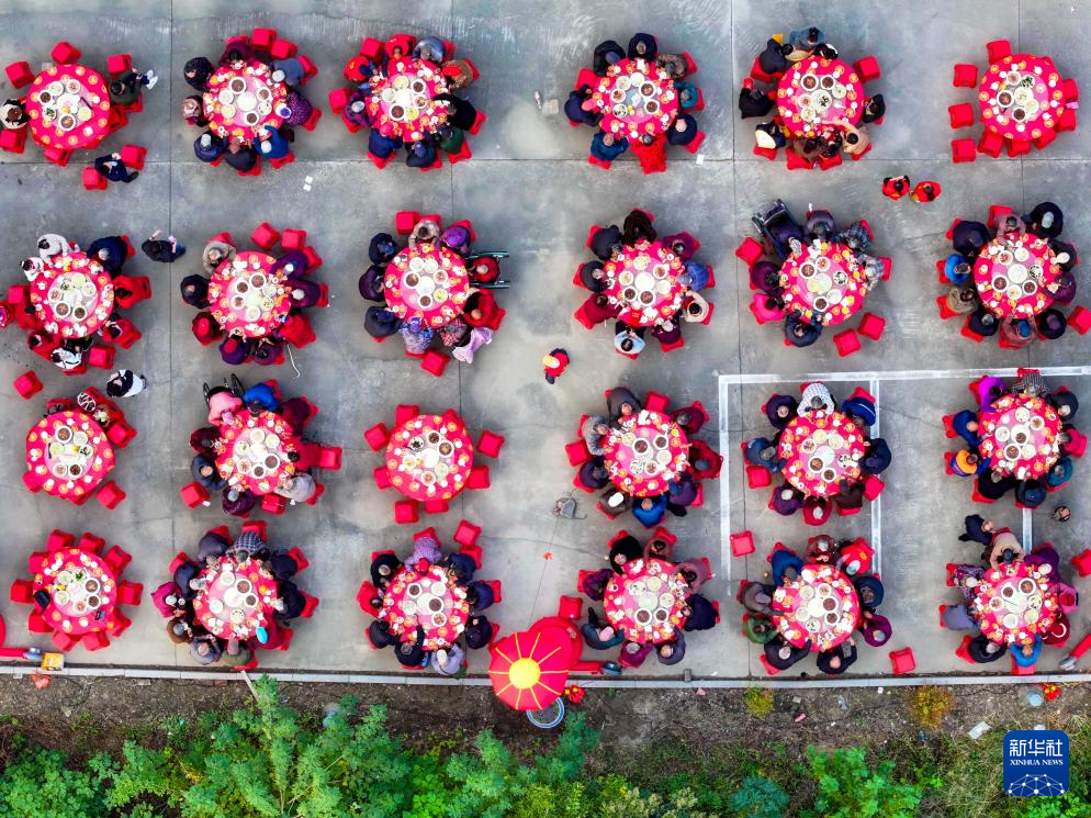 10月26日拍摄的江苏省泰州市姜堰区白米镇马沟村第三届重阳节“百寿宴”现场(无人机照片)。