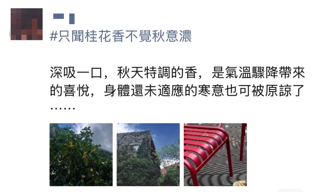 杭州植物园内,也是桂花满园,香味扑鼻,让杨女士不禁写上“桂花依旧香满城”的感慨。