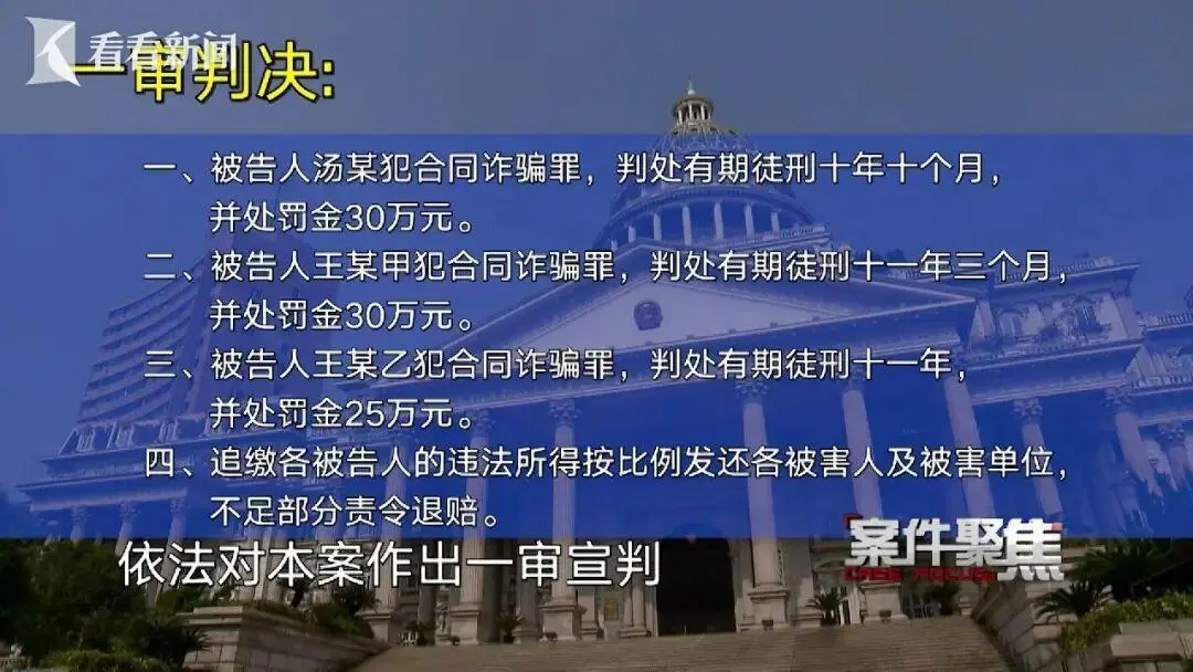 今年9月29日,上海闵行区人民法院依法对本案作出一审宣判:三名被告人犯合同诈骗罪分别被判处有期徒刑十年十个月至十一年三个月不等,并处罚金。一审判决后,三名被告人已向上海市一中院提起上诉。