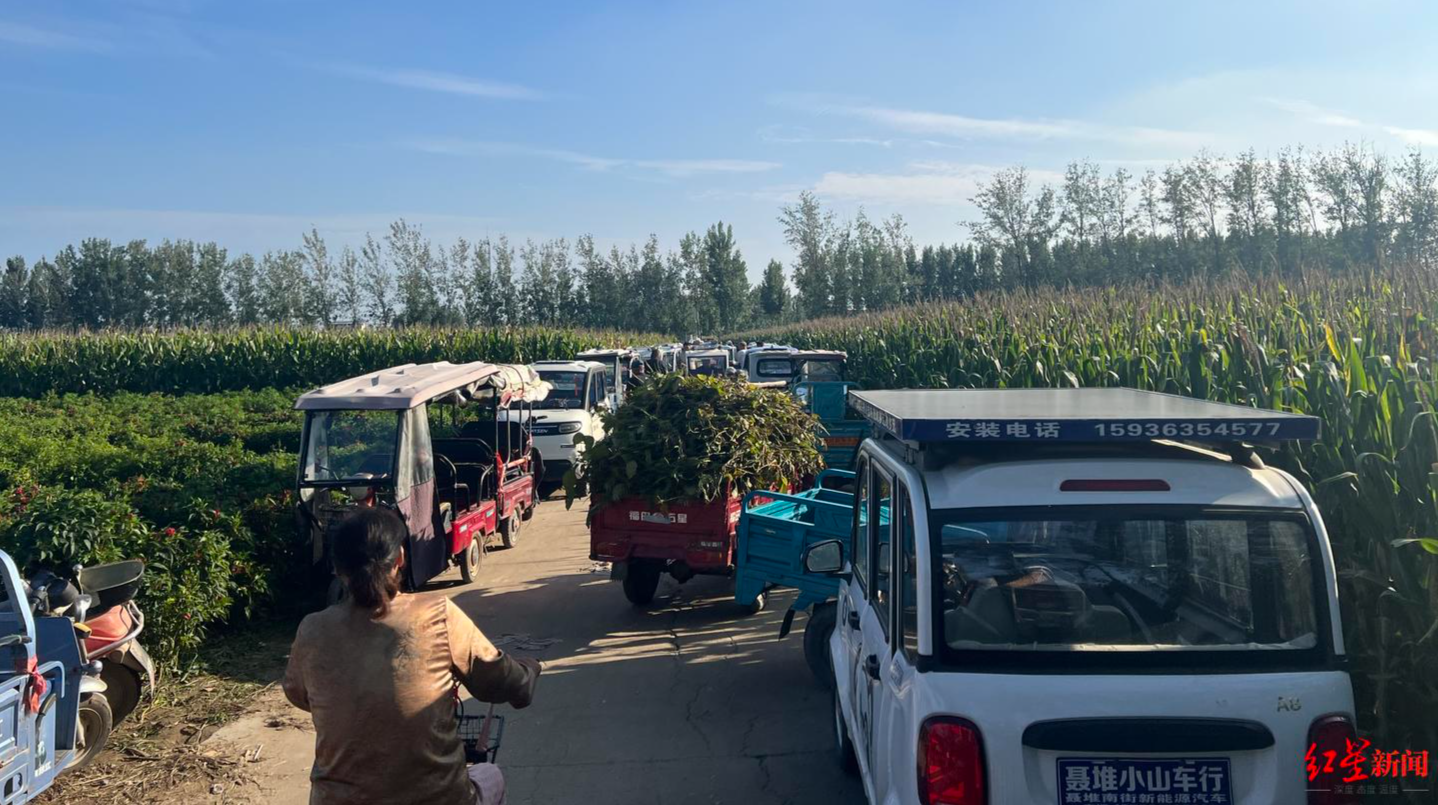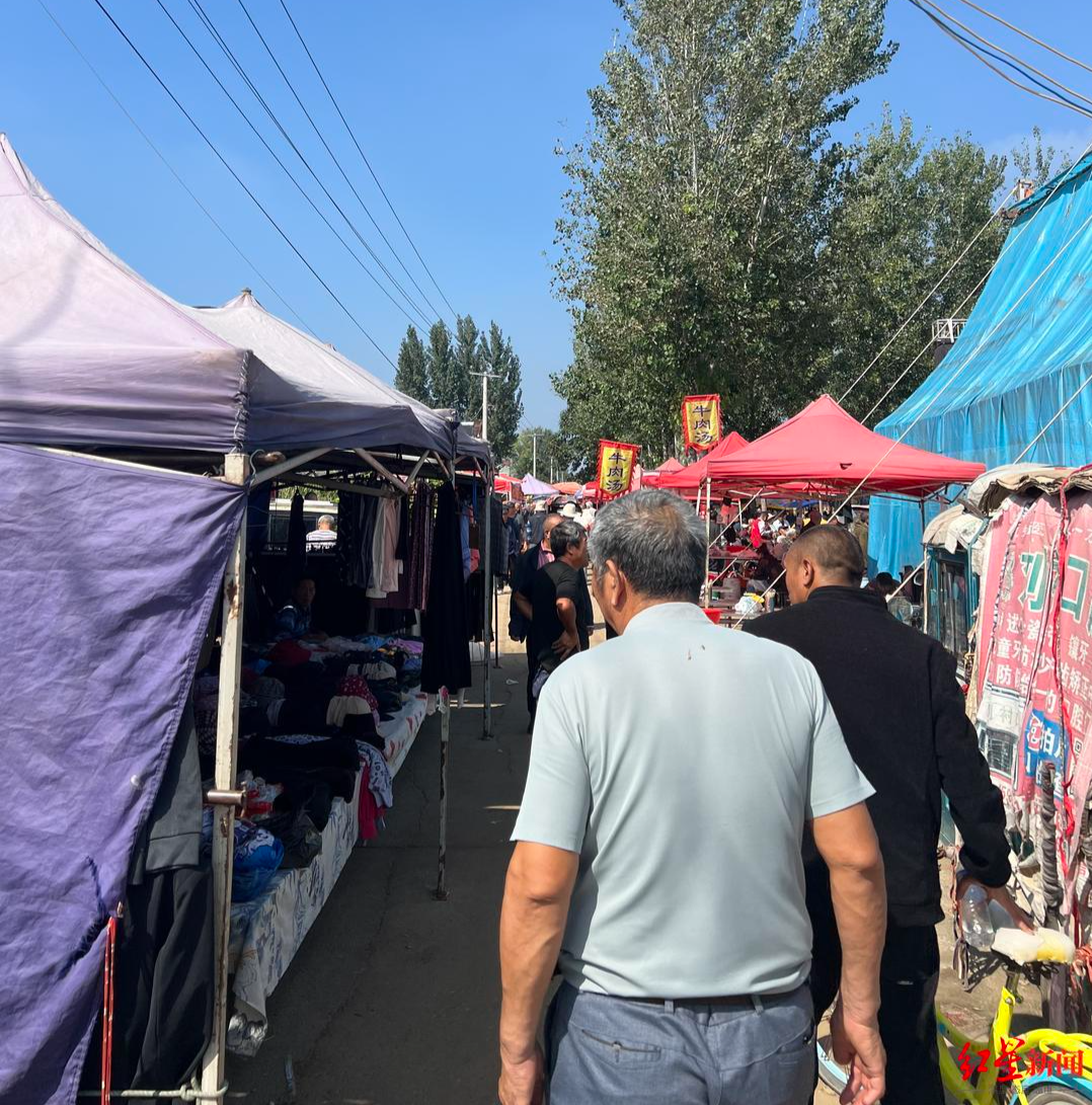 这场戏在周口太康县的一个村子开唱,方圆几公里的老人们骑着电三轮、助力车,带着小马扎来到这里,车子停在高耸的玉米地中间狭窄的乡道上,绵延出去几百米。戏迷们坐在台下,一张张花白、黝黑的面孔挤满了每一个空隙。随戏而来的集市把乡道的另一边围得水泄不通,有人支起一口大锅,煮着羊肉汤,也有人叫卖着水和饮料。
