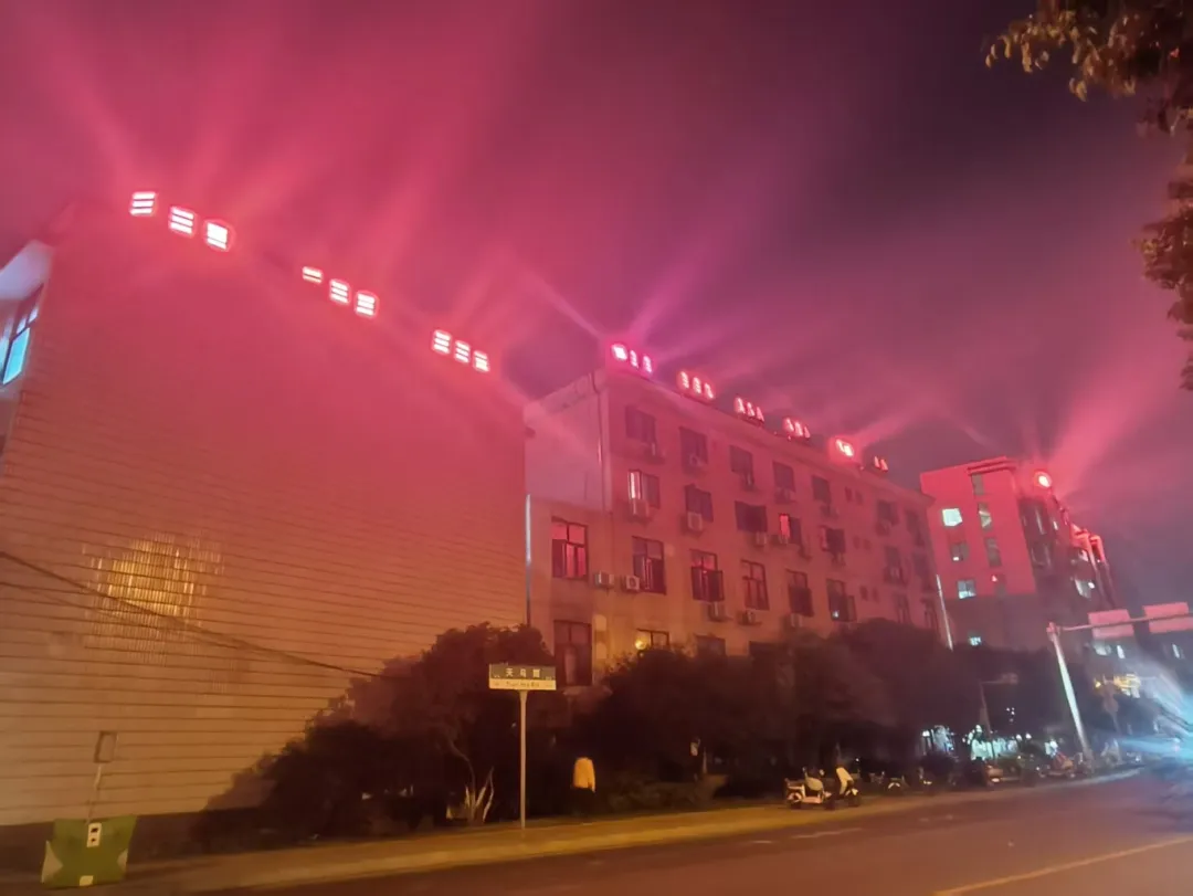 街另一侧建筑被照亮,这些光线也可隔山从湖南大学一处看到,附近一位市民称,发出光线的每个灯体内部,都存在大量灯管。另一位路人则表示,觉得还行,没受到影响。晚10点多,记者再次来到天马路,这些灯光已经关闭。