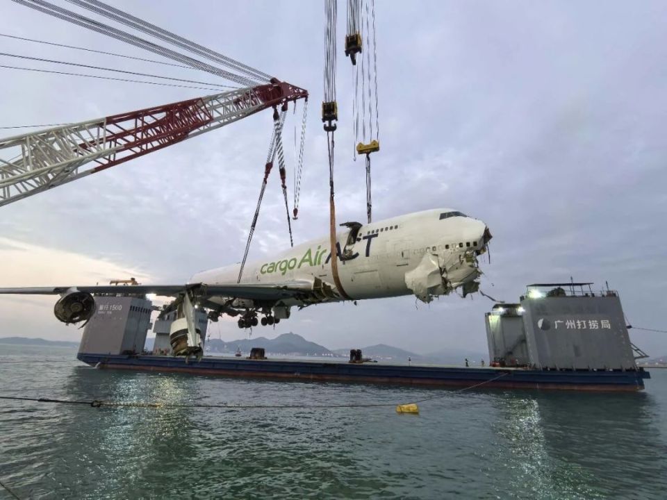 10月29日下午,随着飞机残骸尾段和艏段起吊上岸并完成移交,香港坠海货机打捞工作收官。