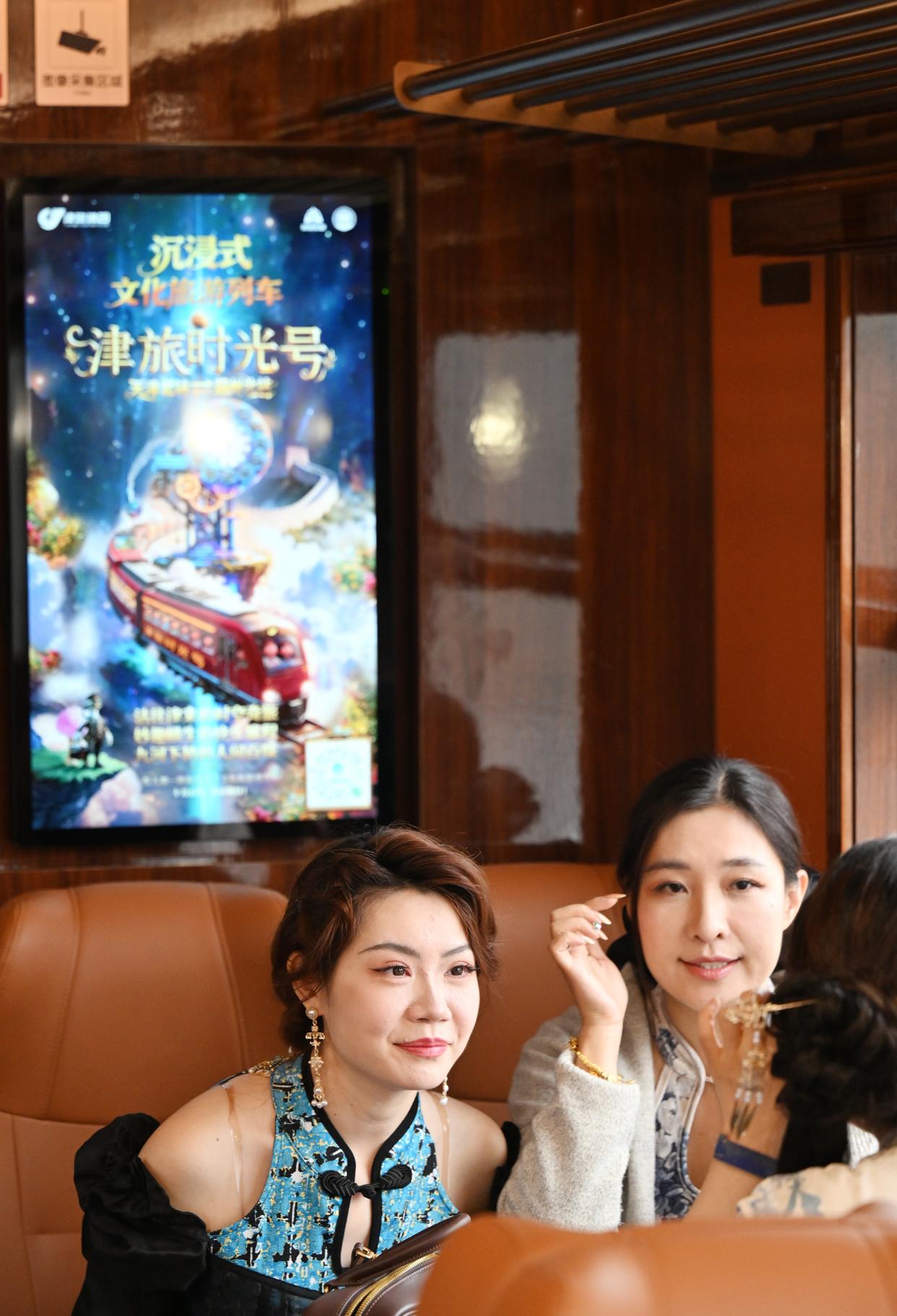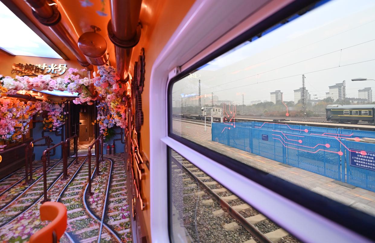 10月30日,全国首列主题娱乐沉浸式文旅专列“津旅时光号”正式投入运营。据了解,该专列由国铁北京局与天津市旅游(控股)集团有限公司联合打造,共设10节主题鲜明的特色车厢,通过歌舞演艺节目等为旅客带来乘车新体验。目前,“津旅时光号”采取班列化运营模式,在天津北站和蓟州北站间定期往返。