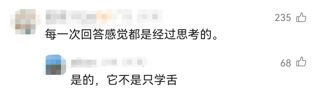 网友评论看完鹦鹉被采访视频,网友们也乐了。有网友表示,爱唠嗑的鹦鹉太可爱,“它是不是因为说太多话,所以变成了烟嗓?”有网友打趣,记者和鹦鹉,“一个敢问一个敢答。”有网友觉得,鹦鹉每一次回答,感觉都是经过思考,不只是学舌。还有网友调侃,“一看就是受过高等教育的鹦鹉。”