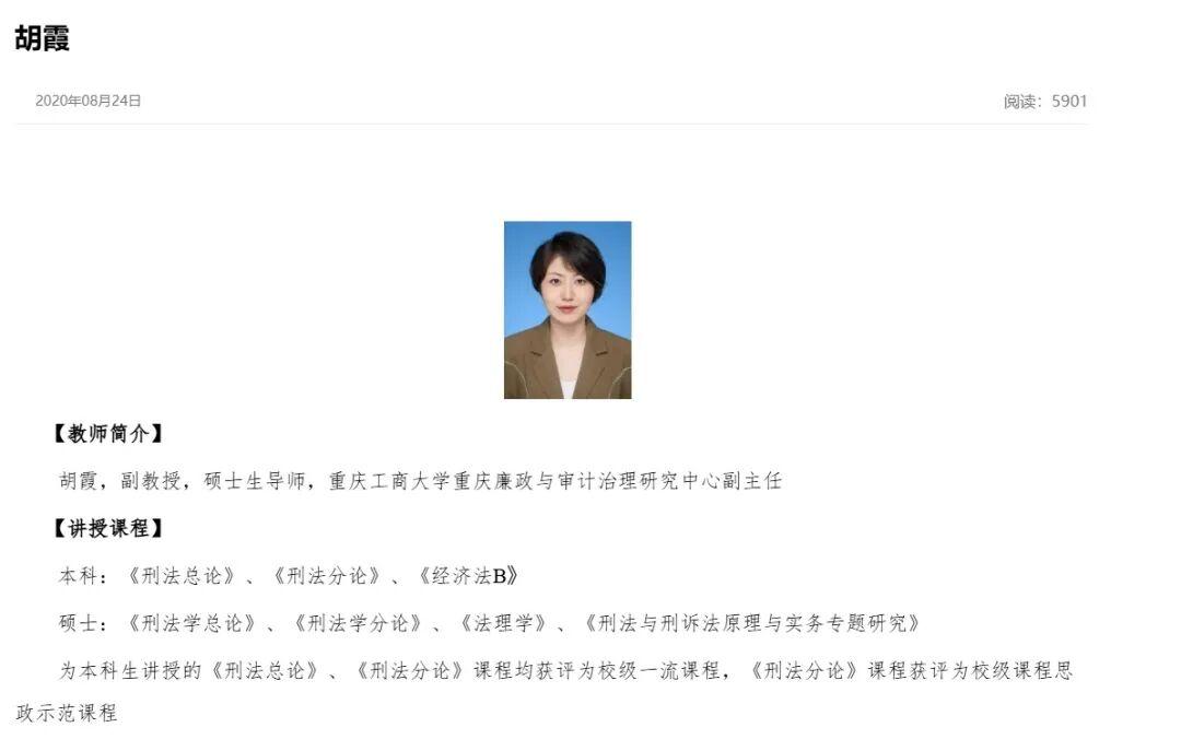 据重庆工商大学法学与社会学学院官网信息显示:胡霞,副教授,硕士生导师,重庆工商大学重庆廉政与审计治理研究中心副主任。