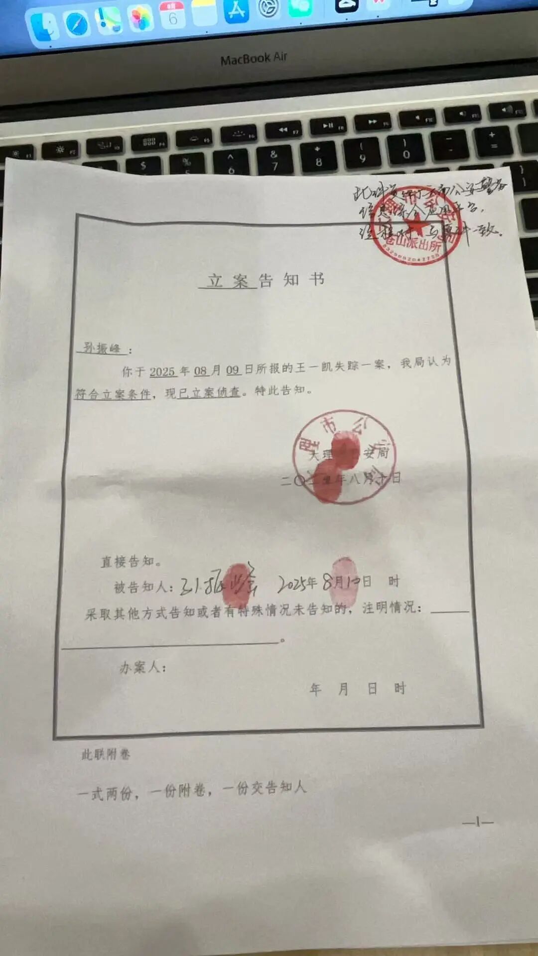 经过两个月的等待,10月24日,郭文收到大理市公安局发出的撤案通知书,称王一凯失踪案“不构成犯罪”,决定撤销案件。她多次致电当地调查小组,却始终无人回应。