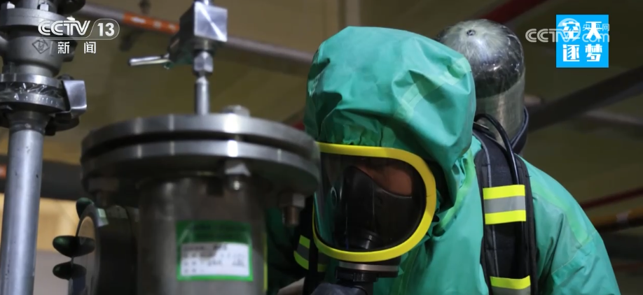 张向飞表示,平时接触这个推进剂都是如履薄冰。进入推进剂库房,凡是要动推进剂燃料的,都要进行一级防护,穿戴隔绝式空气呼吸器,配套防护手套,全封闭式。不管是连管路、拆解管路,干完之后浑身上下都湿透。