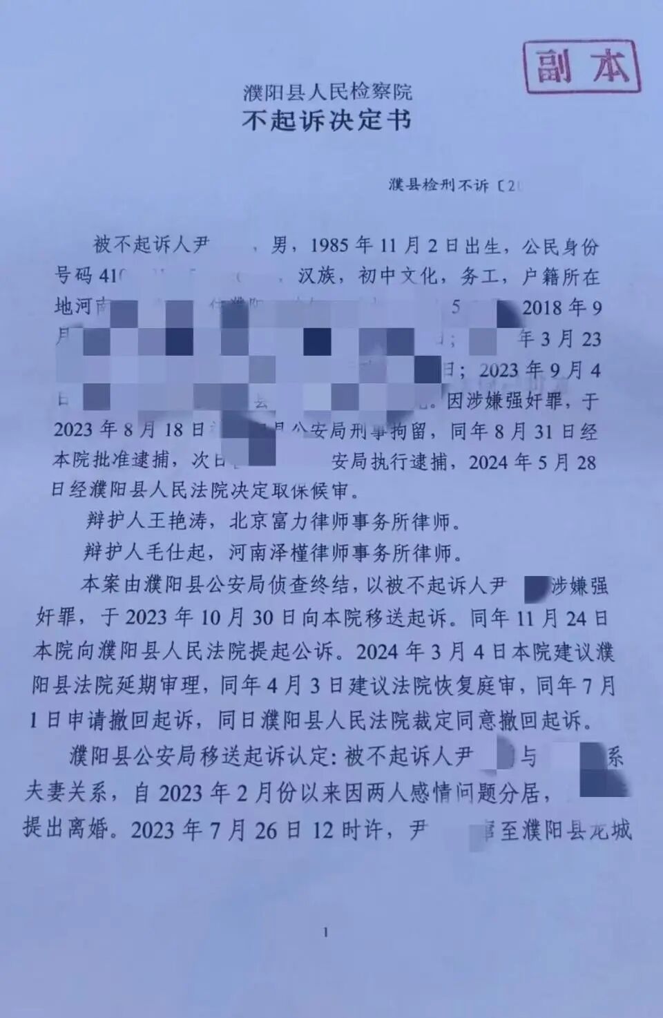 7月31日,濮阳县检察院出具《不起诉决定书》,本案现有证据不足,达不到起诉条件,决定不予起诉。