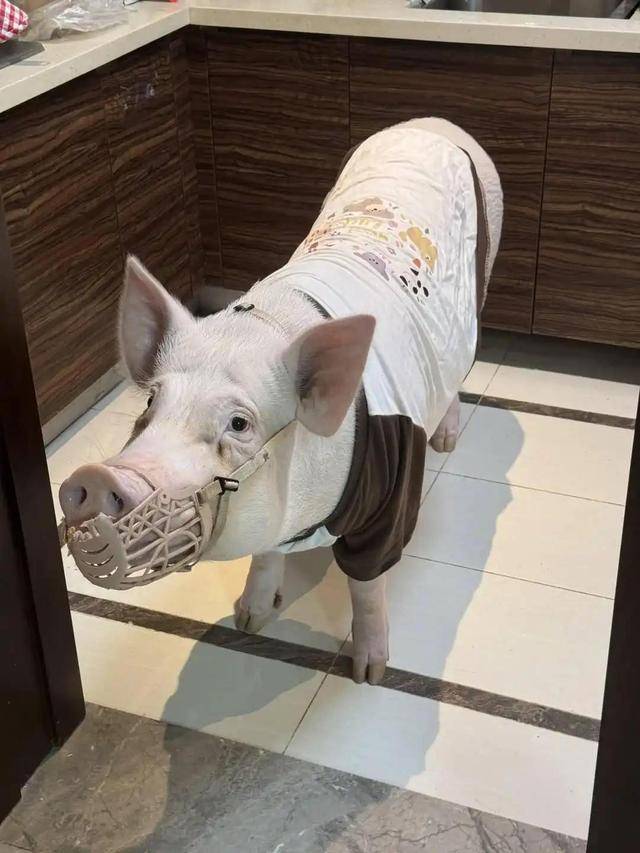 别看“猪蹄花”体型庞大,它的小日子却过得比“天蓬元帅”还滋润。月月和男友嘴嘴(化名)特意空出一间房,为它打造了带独立卫浴和衣帽间的“私猪卧室”;夜里怕它着凉,两人还会起身帮它盖好被子;就连身上的衣服,都是从宠物服装店定制的,足足有二三十件,搭配着各式各样的小毯子,每次出门“猪蹄花”都被打扮得亮眼又可爱。
