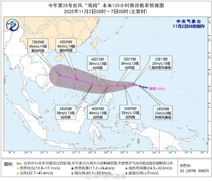 据中央气象台消息,今年第25号台风“海鸥”(热带风暴级;英文名称:Kalmaegi;名字来源:朝鲜;意义:一种海鸟)已于11月1日晚生成。