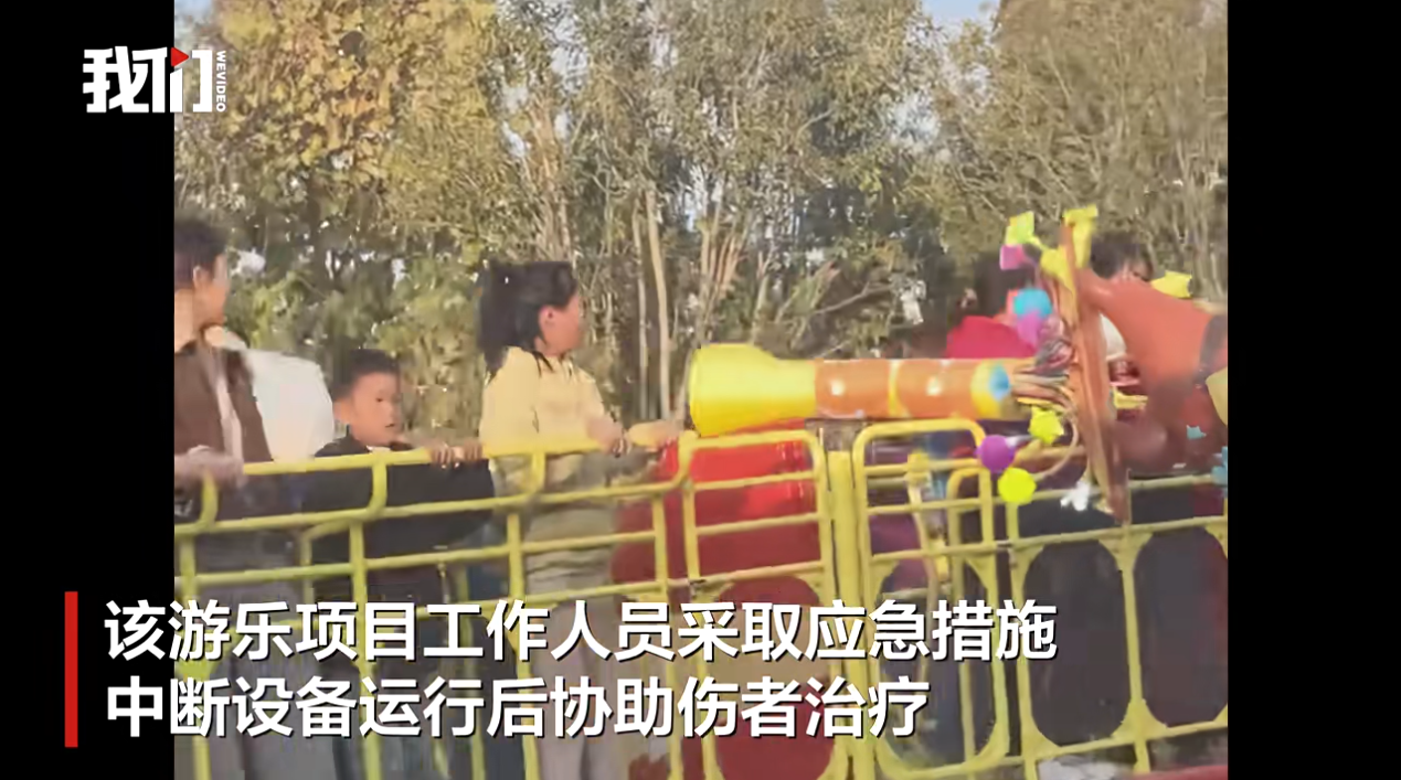 11月2日,江苏淮安一游乐园内,一海盗船项目运行时部件侧倒砸伤游客,该游乐项目工作人员采取应急措施,中断设备运行后,协助伤者进行治疗。