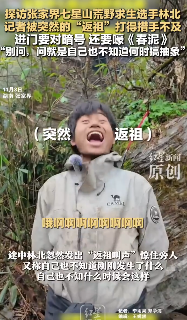 红星记者探访来自四川宜宾的27号选手林北,途中林北忽然发出“返祖叫声”惊住旁人,又称自己也不知道刚刚发生了什么。