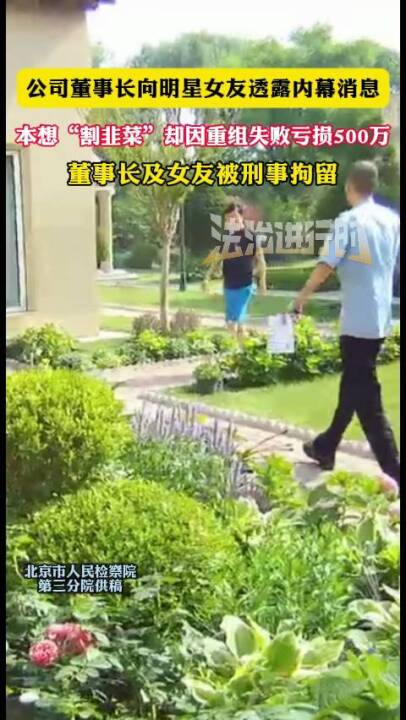 今年9月,北京广播电视台的《法治进行时》披露一起案件:某公司董事长向自己的明星女友透露了内幕消息,本想“割韭菜”,却因重组失败还亏损了500万,事后双方均被刑事拘留。