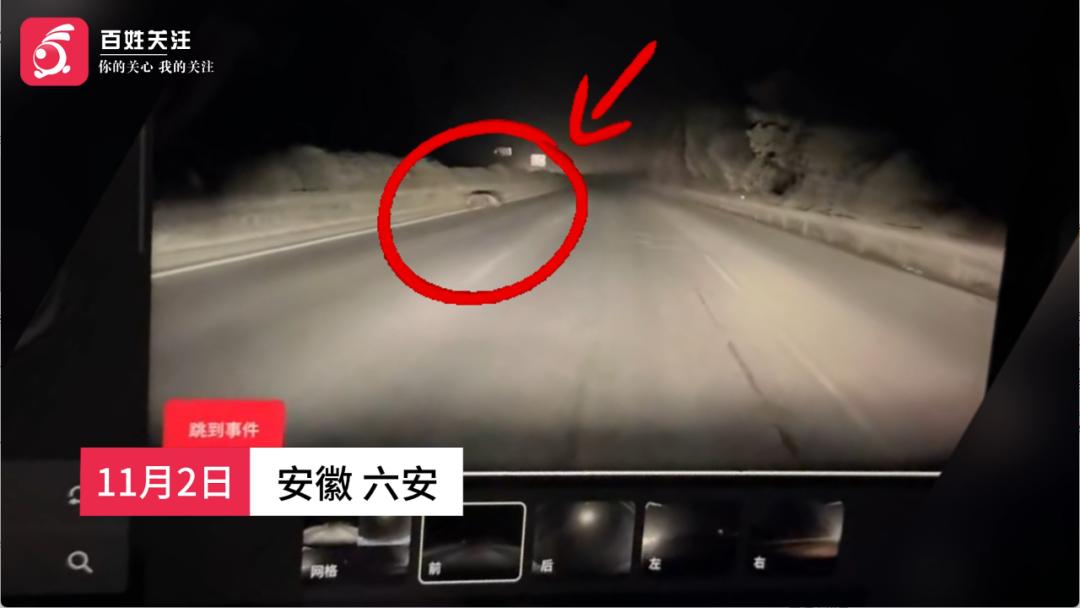 11月2日,车主杨先生驾车途经安徽六安舒城县干汊河镇G346国道时,遇三头野猪横穿马路,躲避不及发生碰撞。