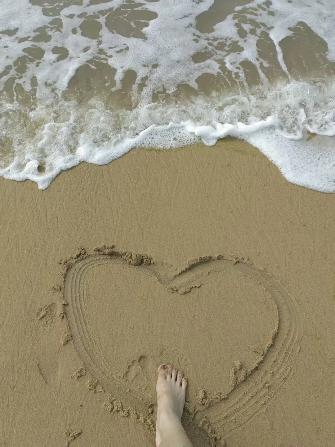 ▲2023年7月,吴传莉在威海的海边沙滩画了一个爱心。受访者供图
