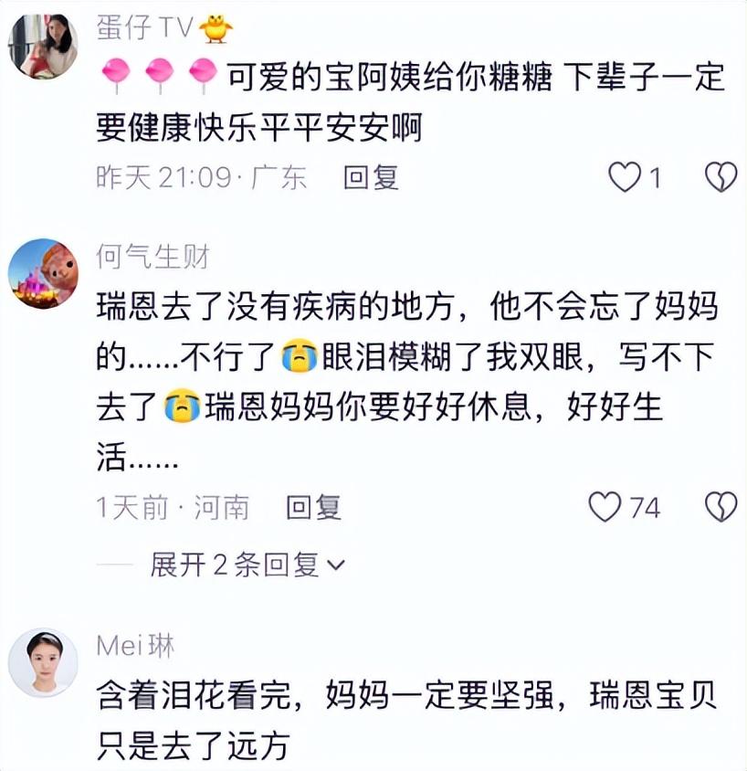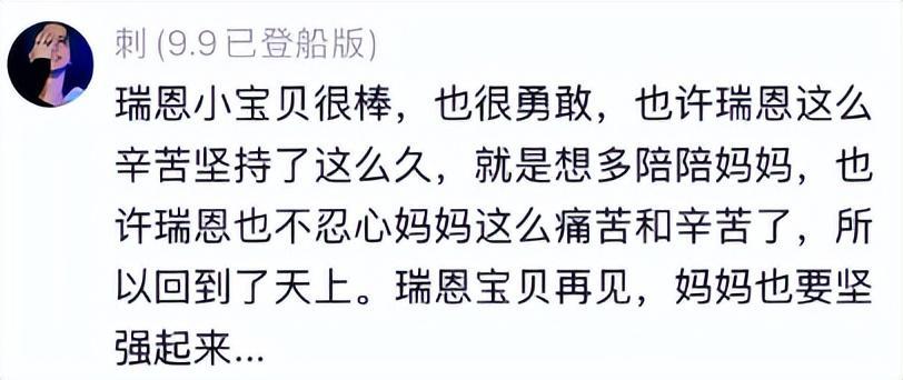 11月4日,“瑞恩宝贝”的妈妈在社交平台发文称,“我的宝贝去天上做回了小天使”证实孩子已去世,引发众多网友哀悼。